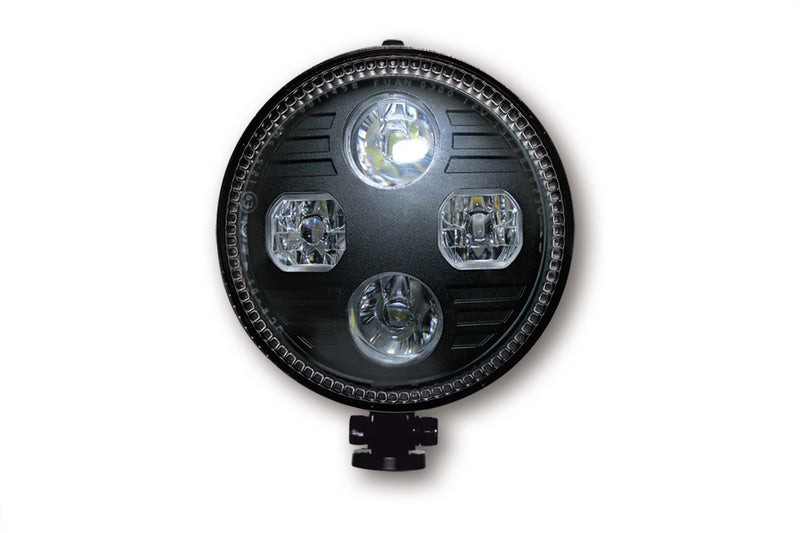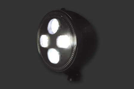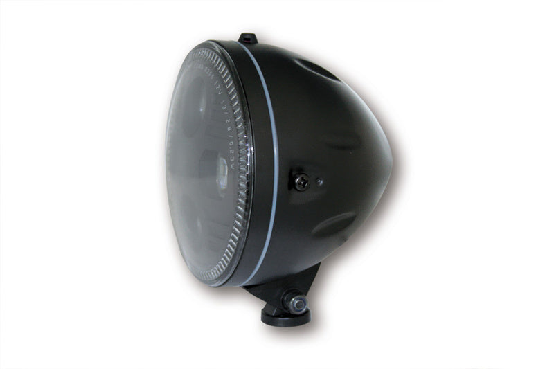 HIGHSIDER 5 3/4 inch LED headlight ATLANTA with parking light, metal housing, lower mounting, E-Homologaed. Available in different colours.