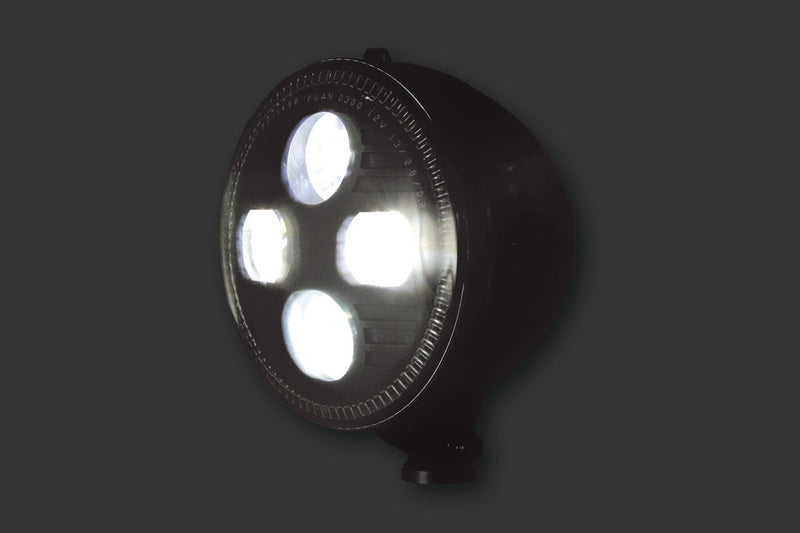 The innovation for your safety – the model ATLANTA is a headlight equipped with 4 power LEDs, which is available in the following variants: In a high quality black metal housing with black insert or in a high quality chrome plated metal housing with chrome plated insert. The LED technology for low beam and high beam produces a symmetrical, daylight-like light for optimal visibility, E-approved.