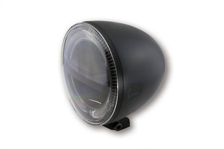 HIGHSIDER 5 3/4 inch LED headlight CIRCLE with DRL / PL, metal housing, lower mounting, E-approved. Available in different colours.