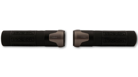 The stylish 7/8 inch handlebar grips HIGHSIDER AKRON create with the superimposition of the two aluminum sleeves a new kind of design language. The outer embodies timeless design with its lines and forms a beautiful contrast with the trapezoidal tongues to the underlying bead-blasted black aluminum cylinder. The HIGHSIDER lettering is incorporated into the handle structure. The removable end caps allow the mounting of handlebar end indicators, handlebar end mirrors or handlebar weights. With these grips, you can give your bike the noble HIGHSIDER look and enhance its appearance.