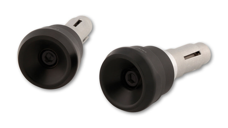 With these nobly designed Bar End Weights with handlebar end mirror receptacle, you can design your bike in detail according to your ideas. These end pieces are used for all HIGHSIDER & SHIN YO handlebar end mirrors with handlebar outer clamp. Handlebar ends also serve to reduce annoying vibrations on the handlebars. Thanks to clamping system with different sleeves universal suitable for 7/8 (Ø22 mm), 1 inch (Ø25,4 mm) or X-Bar (Ø28,6 mm) tube handlebars with an inner diameter from 12 to 22 mm.