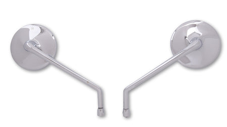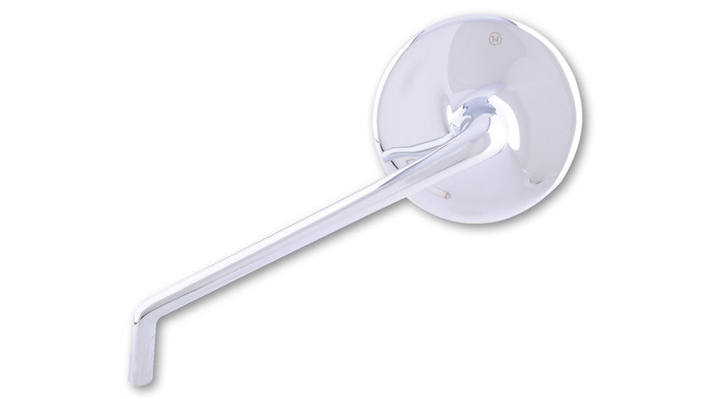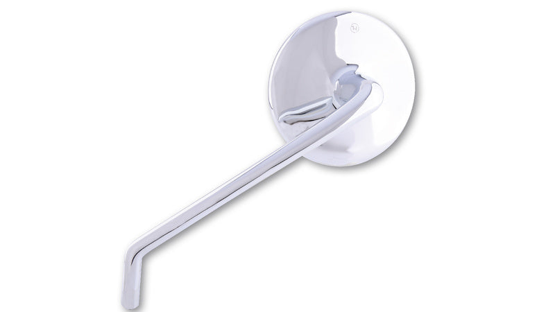Elegant universal mirror with a round head made of high-quality aluminium. The stylized propeller on the back of the mirror head emphasizes the extraordinary design of this model. The slightly tinted and curved mirror glass offers optimum glare protection. The elegant handle has an M10 x 1.25 mm right-hand thread. However, we also offer a wide range of matching thread adapters on our website.