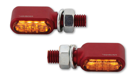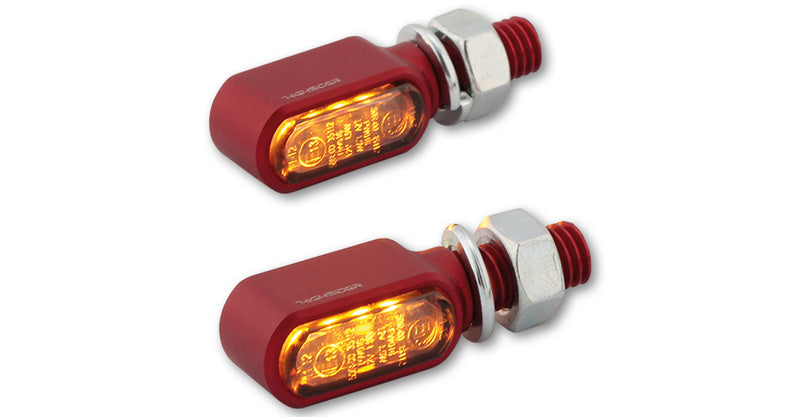 HIGHSIDER CNC LED Indicators Little Bronx, Red, Tinted Glass, E-Approved, (pair)