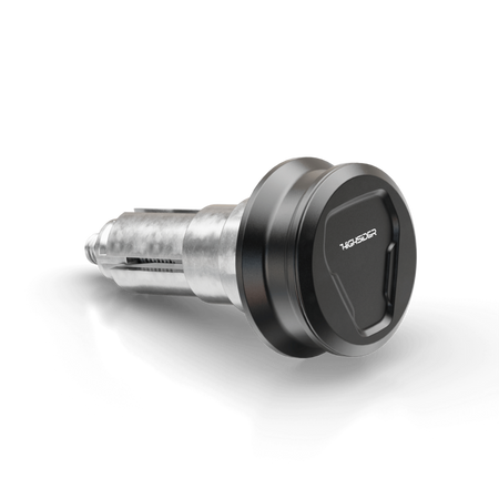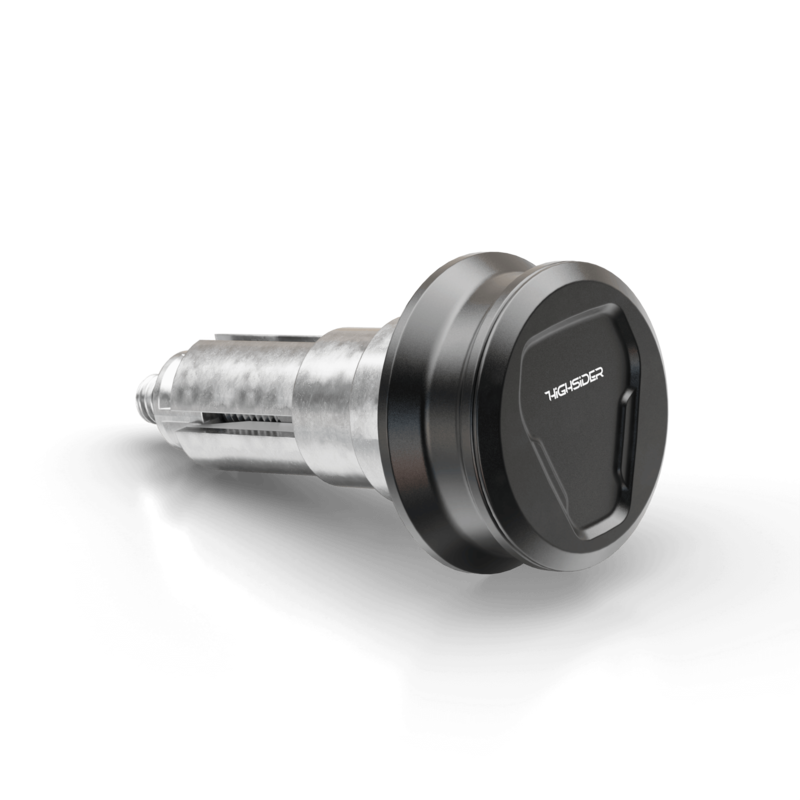 Steep and flat trapezoids form the basic shape of the HIGHSIDER ESAGANO-XS handlebar ends CNC machined from aluminum and create a futuristic design, which thus symbolizes the design language of modern motorcycles. A visual highlight is the cover in which the hexagonal basic shape of our ESAGANO-RS mirror series is CNC-machined. This gives the bar ends a closed appearance, free of the bolt head. The cover is attached via a grub screw in the invisible area of the base housing. About our high-quality and included sleeve system made of aluminum, the bar ends can be mounted on a variety of handlebars with different inner diameters force-fit.