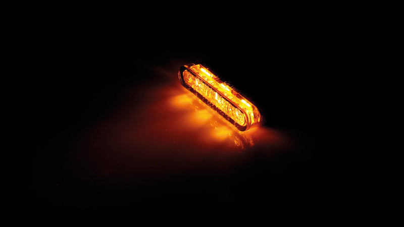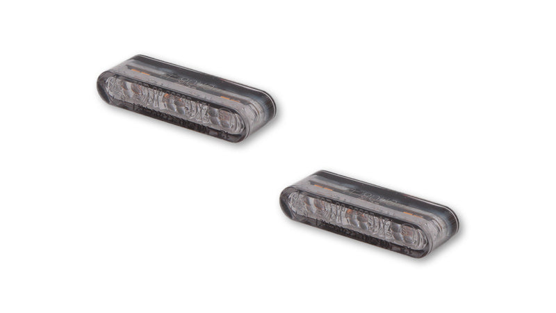 LED built-in turn signal for almost invisible installation on motorcycle, quad or scooter. The HIGHSIDER STAR-MX1 PRO can be fitted in many positions on the vehicle and is particularly popular for conversions where turn signals should not be visible or simply have no space. Elegant look with tinted glass and unmissable thanks to illuminated LEDs.