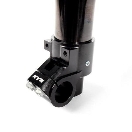 The KYB Factory Kit fork is a double sided closed cartridge fork with one spring each. The fork is used by many world championship teams in motocross and supercross. The KYB kit fork has a very precise and very adjustable damping. A very good response of the fork is achieved by black DLC coated dip tubes, all internal components are also coated and thus the internal friction is reduced to a minimum. The outer tubes are Kashima coated and the fork feet are CNC machined for exact precision and torsional stiffness. Another advantage of the fork is a special spring support which makes the fork more progressive at the end of travel for a softer landing.