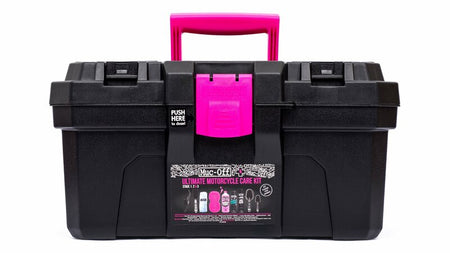 The Muc-Off Ultimate Motorcycle Cleaning Kit covers all the bases when it comes to cleaning, protecting and lubing your motorcycle. This kit isn't style specific either with all the essentials for Road & Off Road riding. Complete with our award winning Motorcycle Cleaner, Microcell Sponge, Soft Washing Brush, Detailing Brush, Two Prong Brush, Claw Brush, Microfibre Cloth, Motorcycle Protectant & Motorcycle Speed Polish, this kit is the perfect Birthday or Christmas gift for any motorbike fanatic! NB: To maintain performance of all brushes avoid use with boiling water and on hot parts. We recommend using warm water and allowing all hot parts to cool before use. Heavy Duty Washer / Storage Tool Box includedContains Microfibre Cloth Contains Two Prong BrushContains Detailing Brush Contains Soft Washing Brush Contains Claw Brush Contains Microcell Sponge Contains Motorcycle Protectant Contains Motorcycle Speed Polish Contains Nano Tech Motorcycle Cleaner