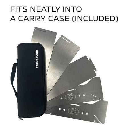 Ingeniously crafted from top quality stainless steel, its ultra-compact, flat-pack design means it fits easily into your luggage, specifically a motorcycle pannier. It slots together in seconds and when cool simply pull it apart, wash and pack away in the handy carry pouch.