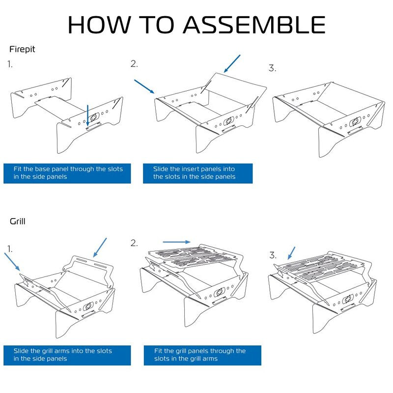 • Flat-packs into 600D polyester Firepit carry pouch measuring 320 x 120 x 15mm