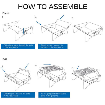 After you've finished cooking and the grill is cool, simply pull apart, wash and pack away along with the Firepit into the handy carry pouch.