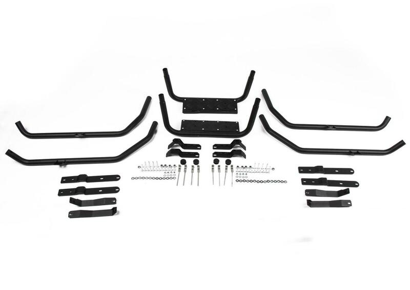 Powder-coated frontal protection kit made of steel specially manufactured for the vehicle.