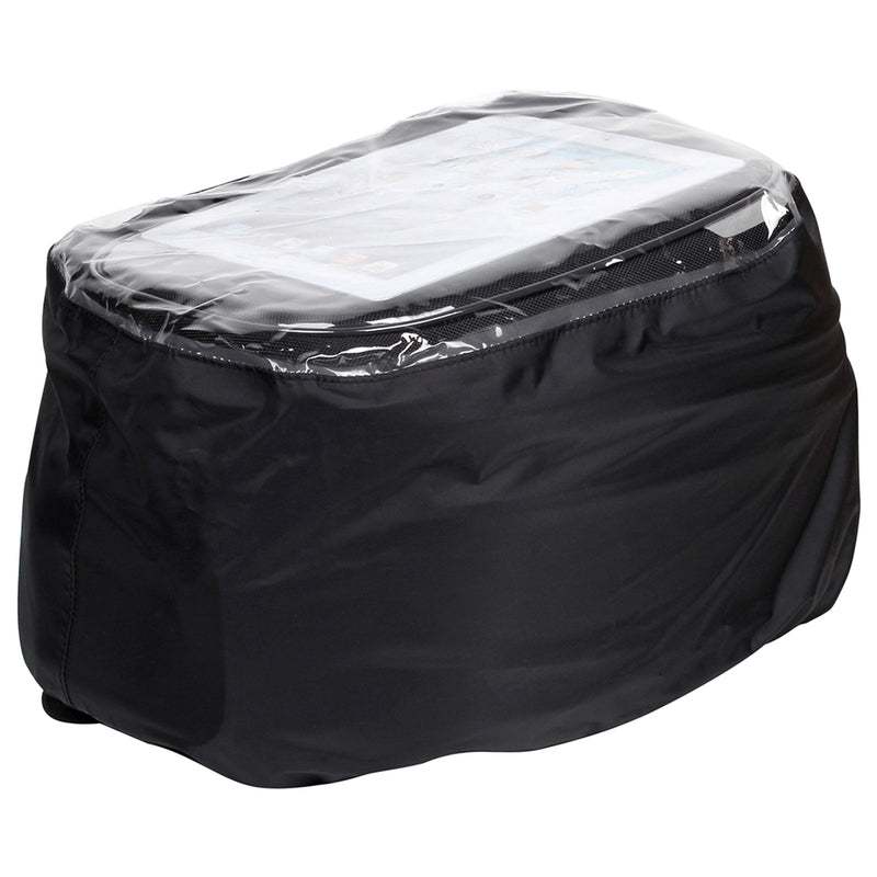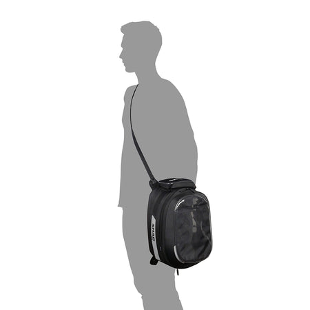 Expandable tank bag with extra volume in the same piece, from M to XL, capacity enough for a full-faced helmet. Fixed to the bike through a universal tank base (Included).